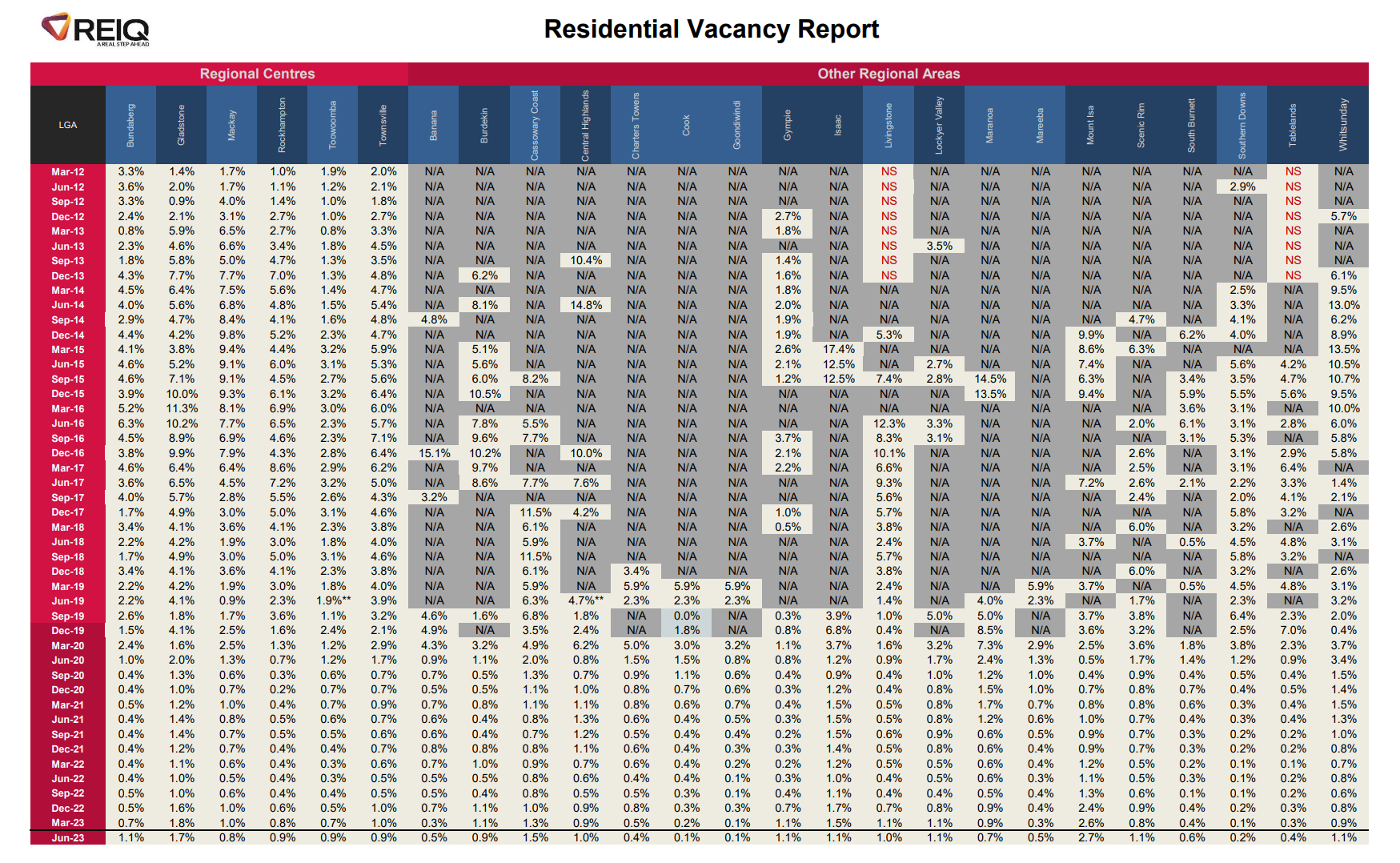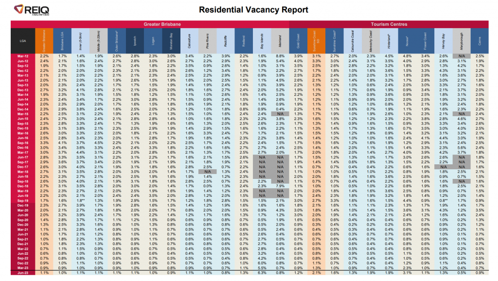 The REIQ Residential Vacancy Rate Report for the June 2023 Quarter, released today, covers 50 local government areas (LGAs) and sub regions in Queensland, and comes as the state-wide vacancy rate rose to 1.0% for the first time since December 2021.